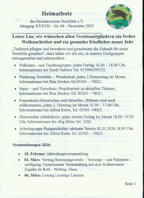 In diesem Jahr zieren Bilder des Vorsfelder Drömlings die Vorderseiten.